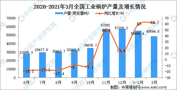 據(jù)產(chǎn)業(yè)研究院數(shù)據(jù)庫(kù)顯示,2021年3月全國(guó)工業(yè)鍋爐的產(chǎn)量為48544.8蒸發(fā)量噸,1-3月累計(jì)產(chǎn)量為111…